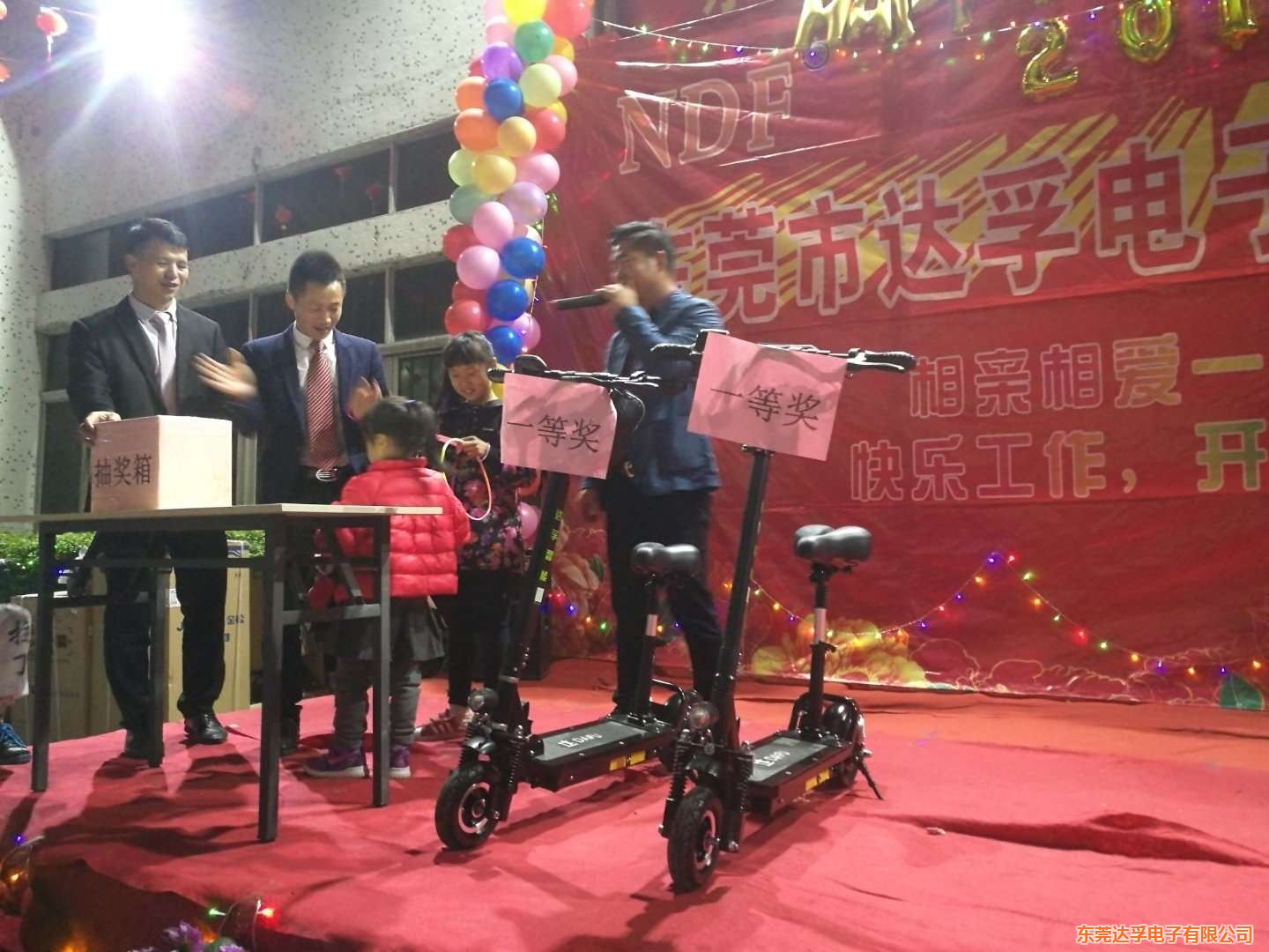 年終獎品為:特等獎:50寸液晶電視1臺,1等獎:智能電動滑板車2臺,2等獎:冰箱1臺,洗衣機2臺,及現(xiàn)金獎(50-300)不等,還有各式各樣小禮品